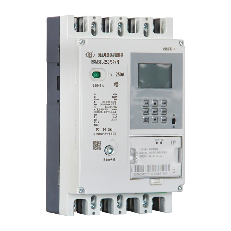 BKM3EL系列物联网型剩余电流保护断路器适用于交流50Hz,额定绝缘电压1000V,额定工作电压至400V的三相四线中性点直接接地的低压电网系统。本系列断路器具有过载保护、短路保护、剩余电流保护、过电压保护、欠电压保护、缺相保护及重合闸等功能。也可防止电气线路或电气设备接地故障引起的电气火灾和电气设备损坏事故及用来对人身触电危险提供间接接触保护。本系列断路器执行标准:IEC 60947-1及GB/T 14048.1 《低压开关设备和控制设备 第1部分:总则》IEC 60947-2及GB/T 14048.2 《低压开关设备和控制设备 第2部分:断路器》IEC 60947-4及GB/T 14048.4 《低压开关设备和控制设备 第4-1部分:接触器和电动机起动器 机电式接触器和电动机起动器(含电动机保护器)》